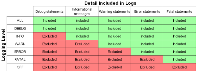 TRACE > DEBUG > INFO > WARN > ERROR > FATAL 순 입니다.