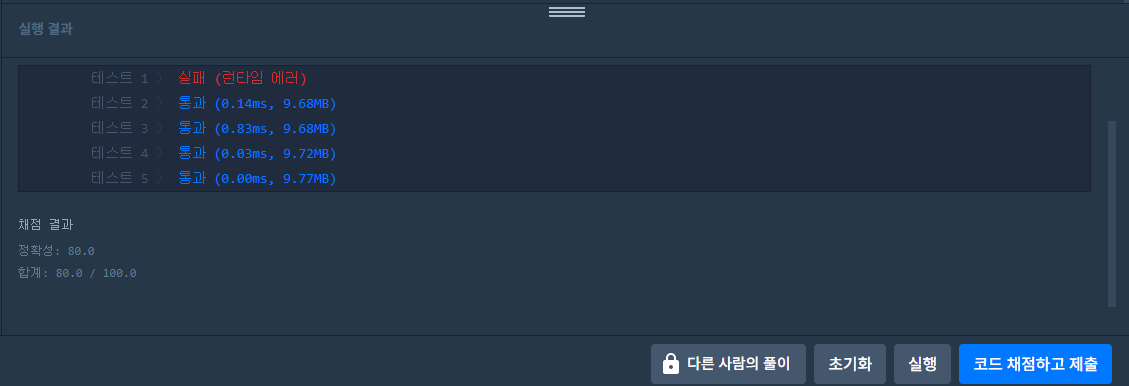 왜 런타임 에러가 뜨는지 참...