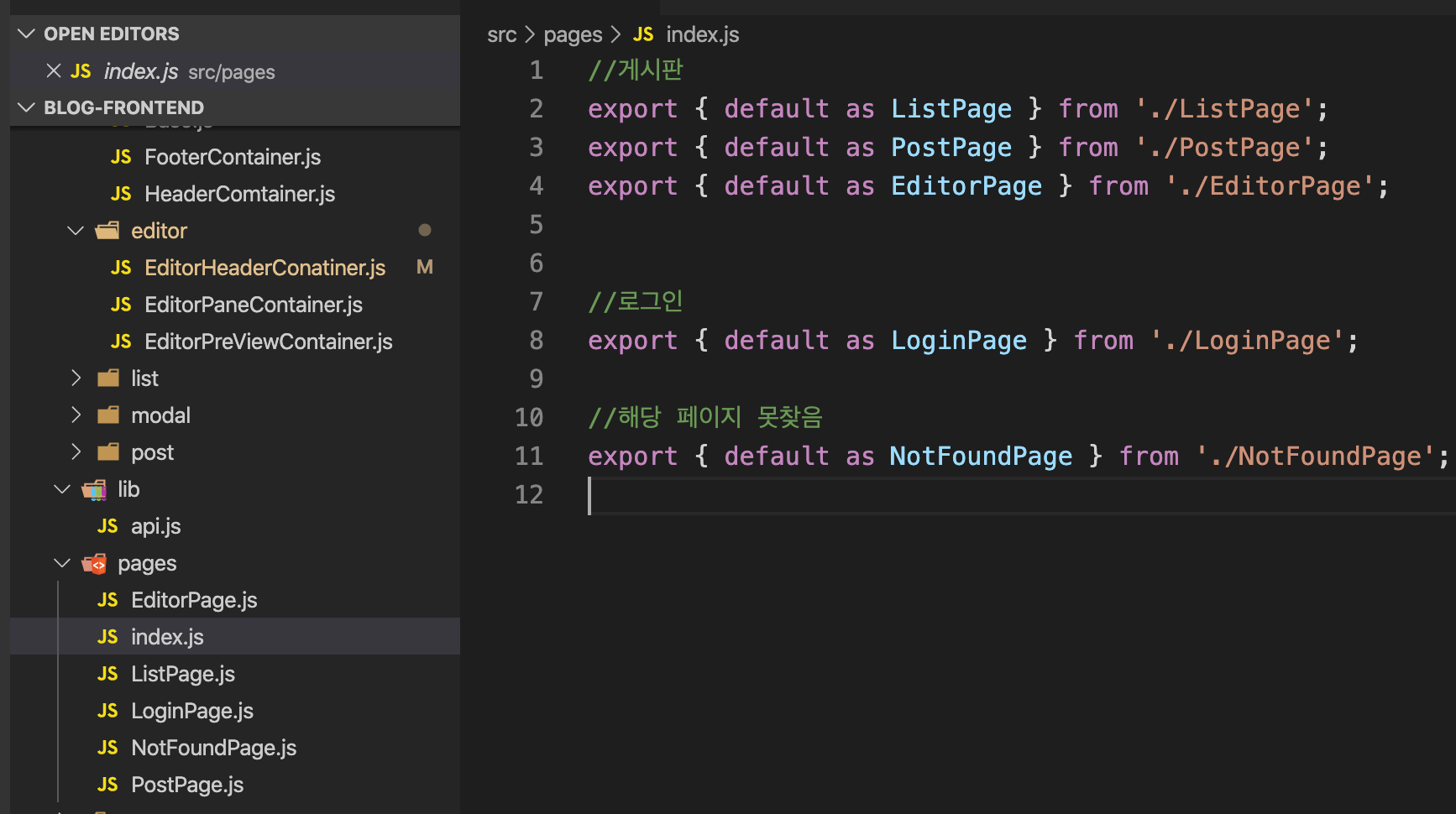 - Page : Containers와 Component을 불러와서 라우팅된 페이지를 구성하는 폴더이다.