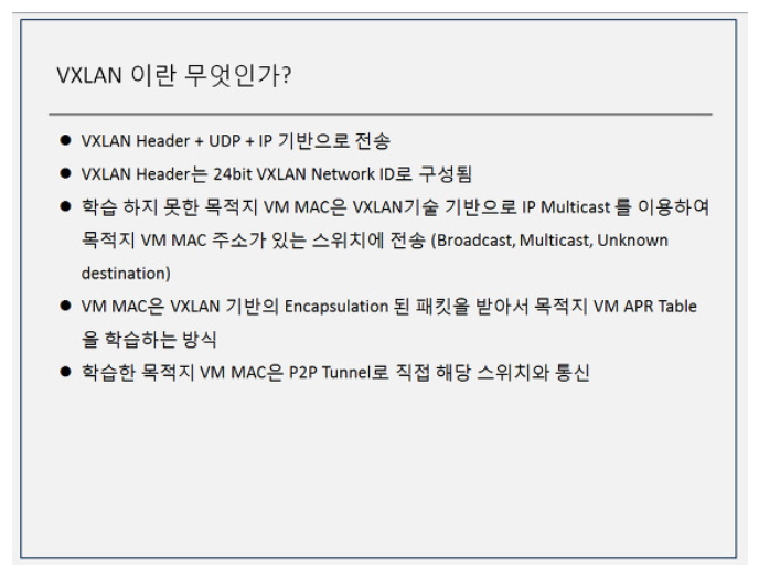 - VXLAN은 Domain 관리를 위한 구분자(VNI)를 제공한다.